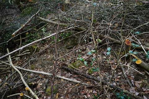 墳頂に残る石材。