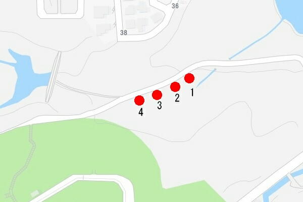 道路左手(南)に総数4基の古墳が東西に並んでます。