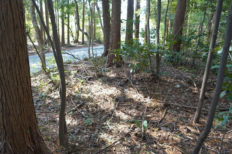 道路周辺の林内に低い墳丘が残ってます。
