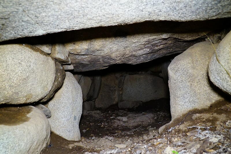 丸い自然石の巨石で構成された巨石墳です。