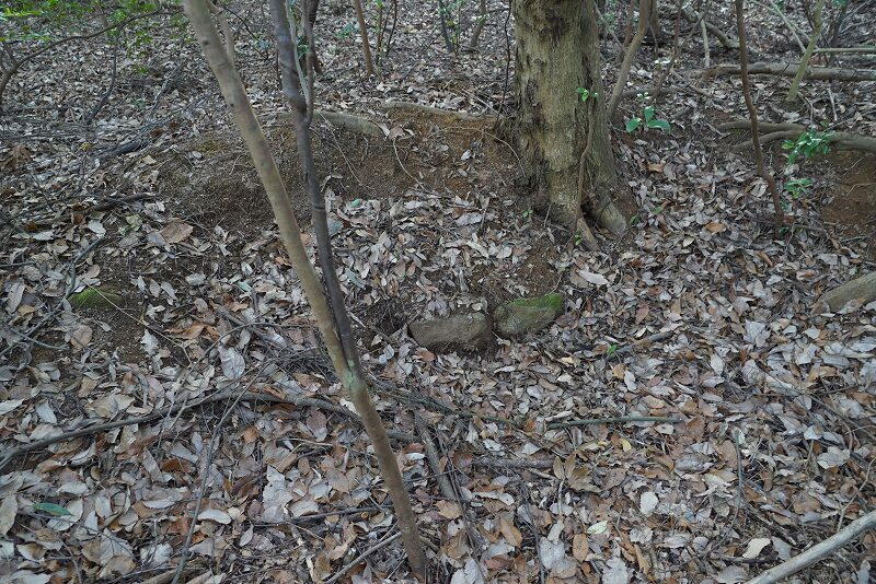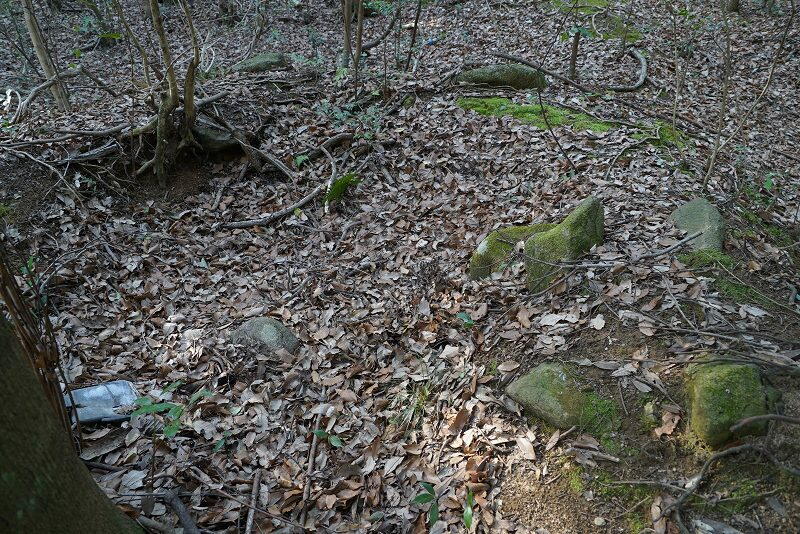 わずかに石材が残るが、どの部分の石材かは不明。