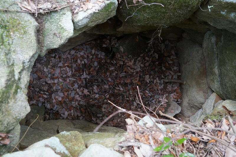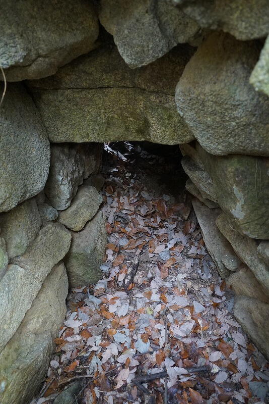 小規模の石室ながら、壁面が上部で持ち送っています。