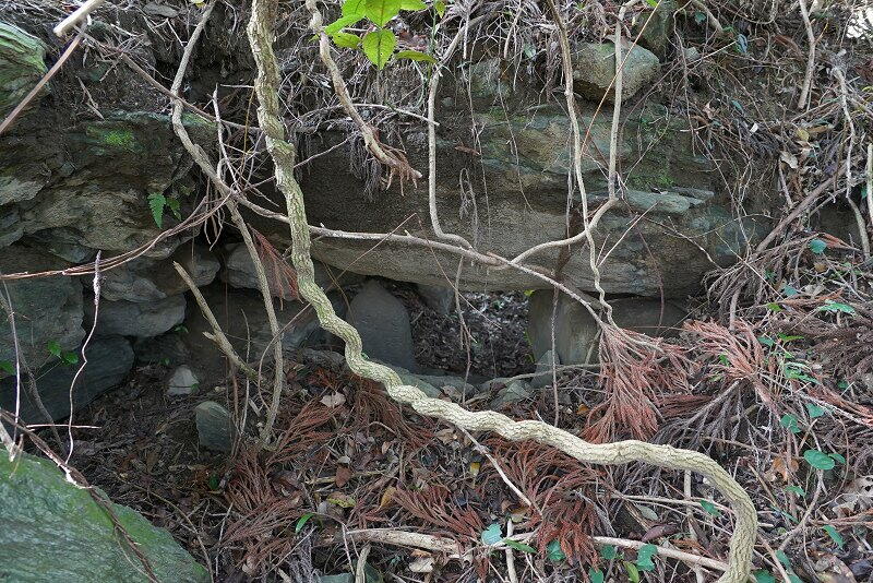 近寄ってみると、横穴式石室の玄室が露出。