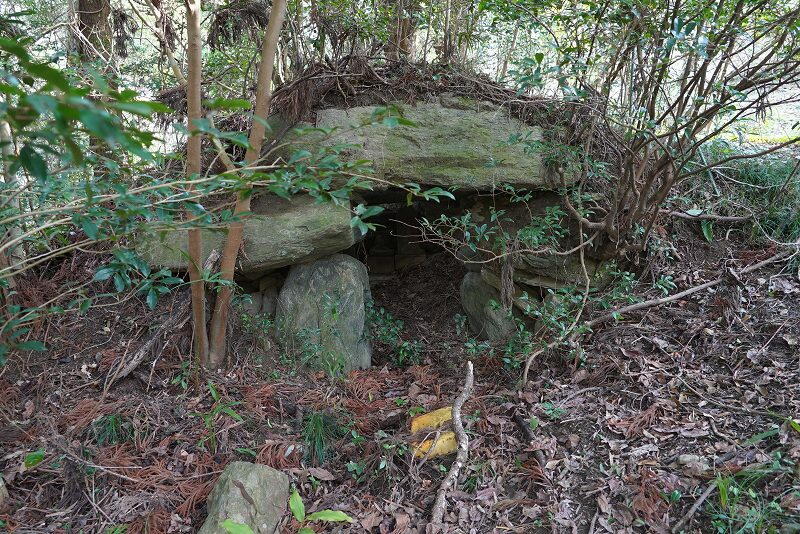 左が奥壁側で、天井石が石室内に落ち込んでいます。