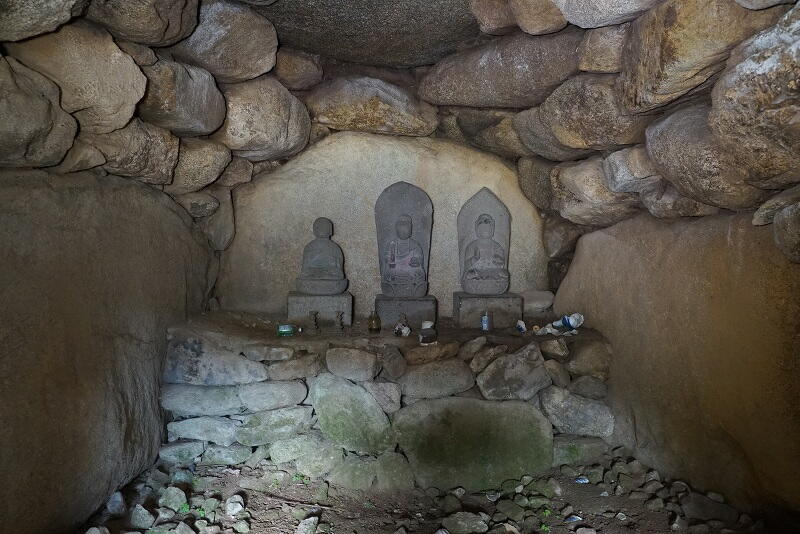 奥壁には祭壇が設えられており、石仏が祀られてます。