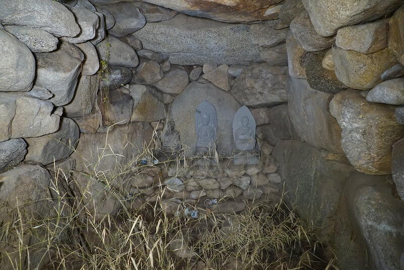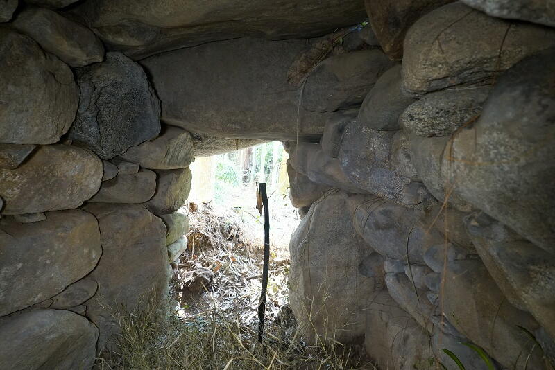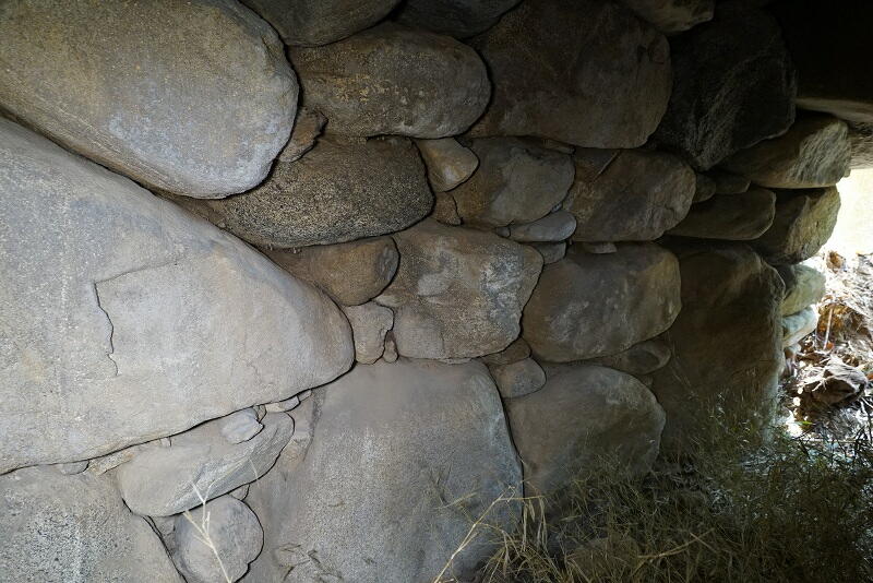 側壁は自然石に近い大ぶりな石材を、持ち送りながら積んでいます。