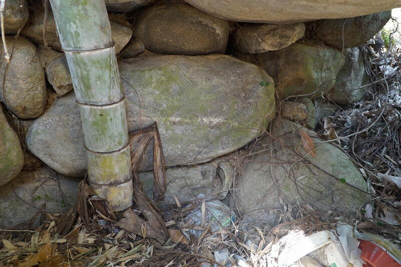 右側壁の石積み。