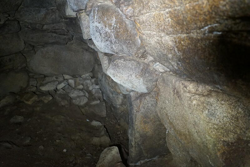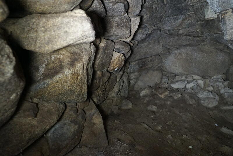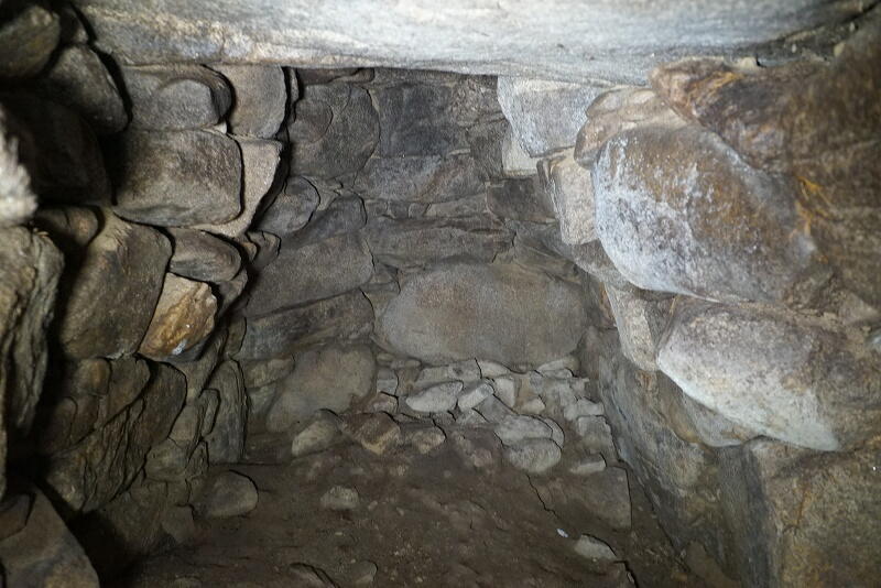 小ぶりな石材で構成され、持ち送りの大きな石室です。