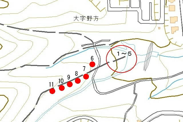 道路東側の砂防ダムの中に5基ほどの古墳があり、