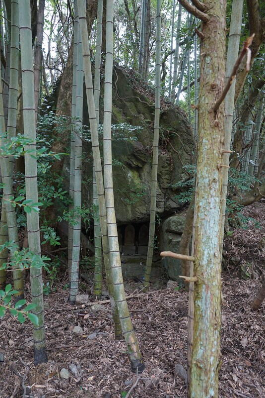 とんでもない巨石の下に石仏が祀られてます。