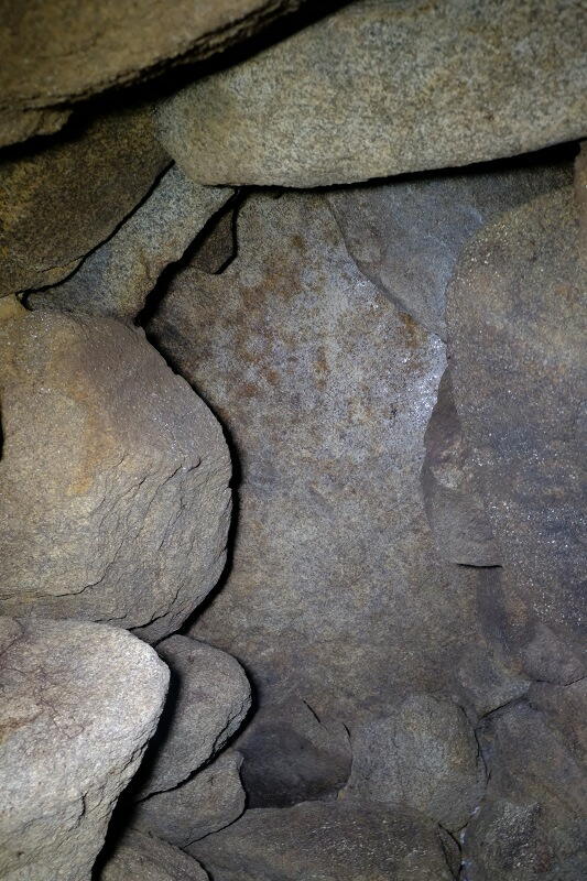 奥壁は下部に腰石を据え、上部に割石を積んでます。