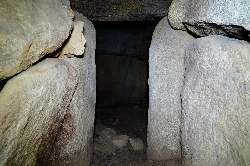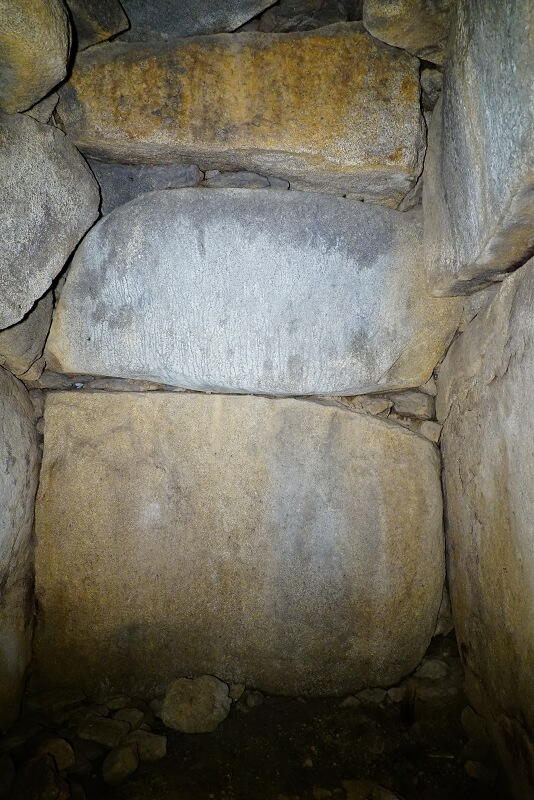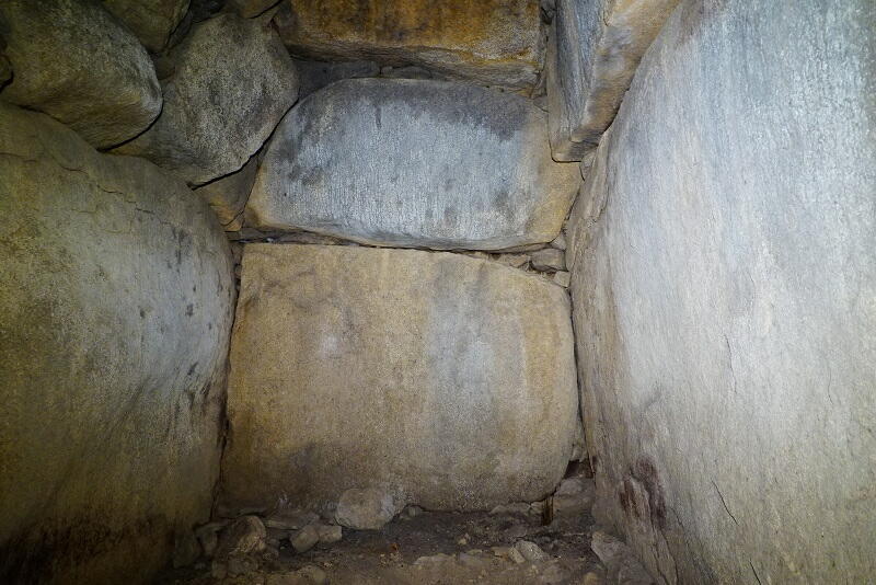 各面が巨石の一枚岩で構成された、精緻な石室。