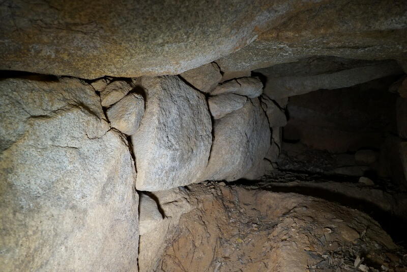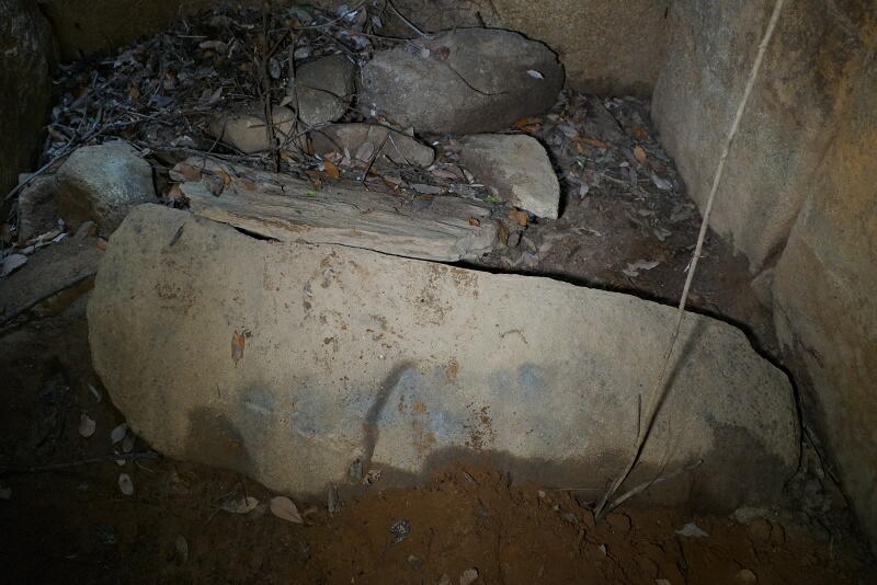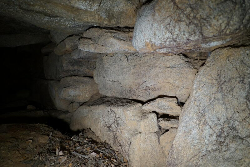奥壁は巨大な鏡石を並列に用い、側壁下部も巨石です。