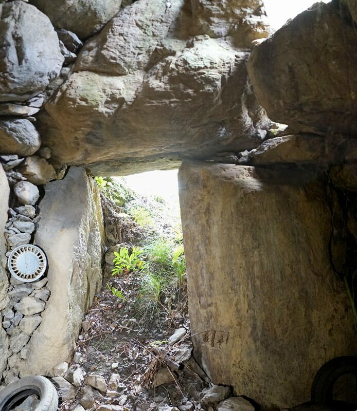 羨道はほぼ消滅し、玄室に滑り落ちるような状況。