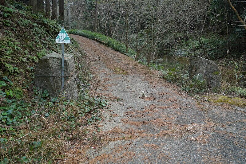 東側から山道をズンドコ登ってくると、この「水源の森」と書かれた三差路にたどり着きます。