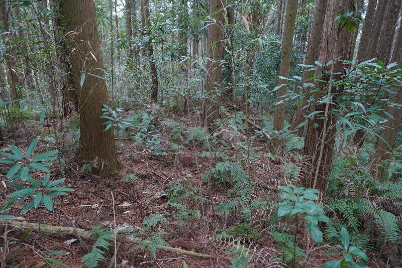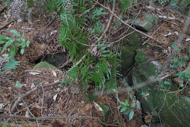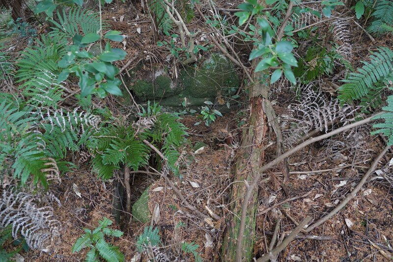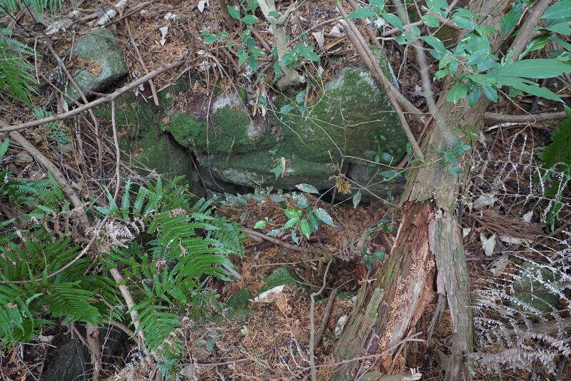 墳頂には横穴式石室の下部が露出。