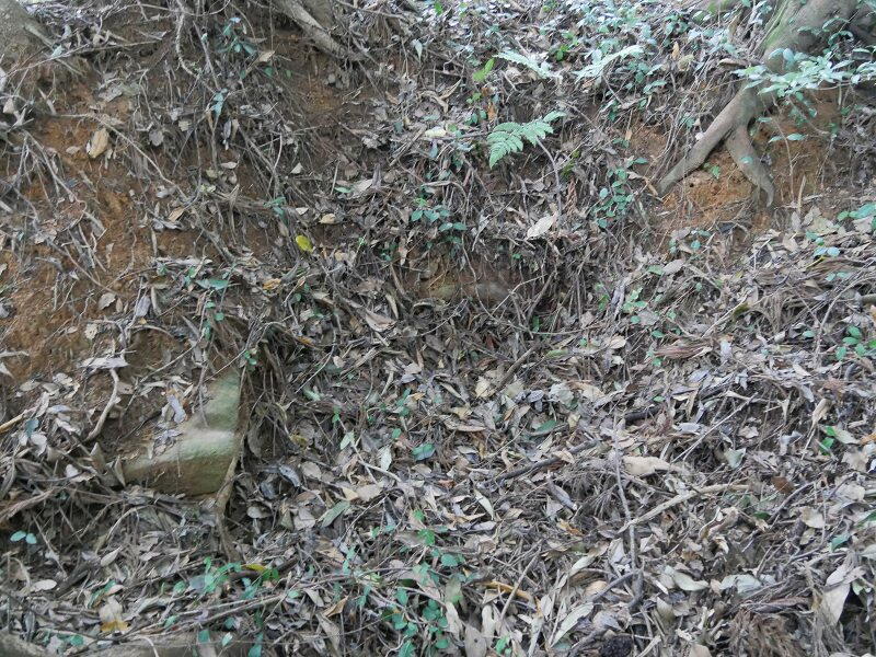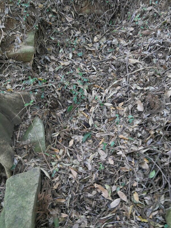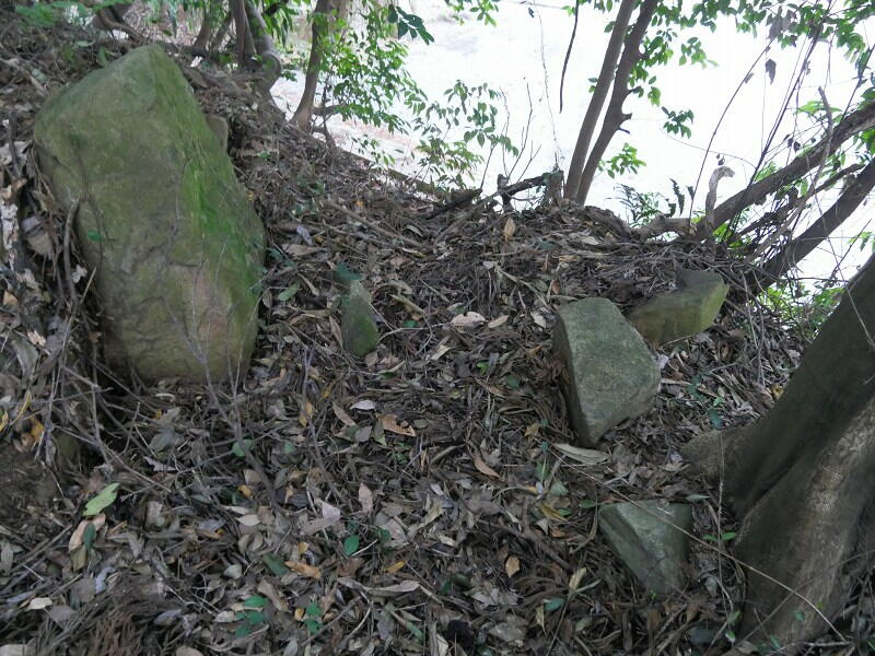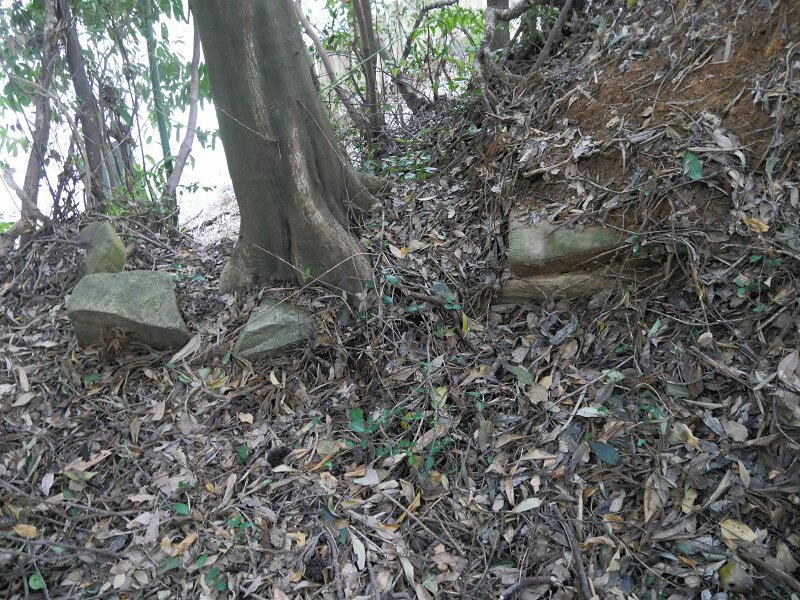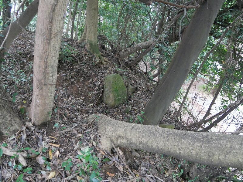 説明板の真後ろの崖上に、崩壊した石室が残っています。