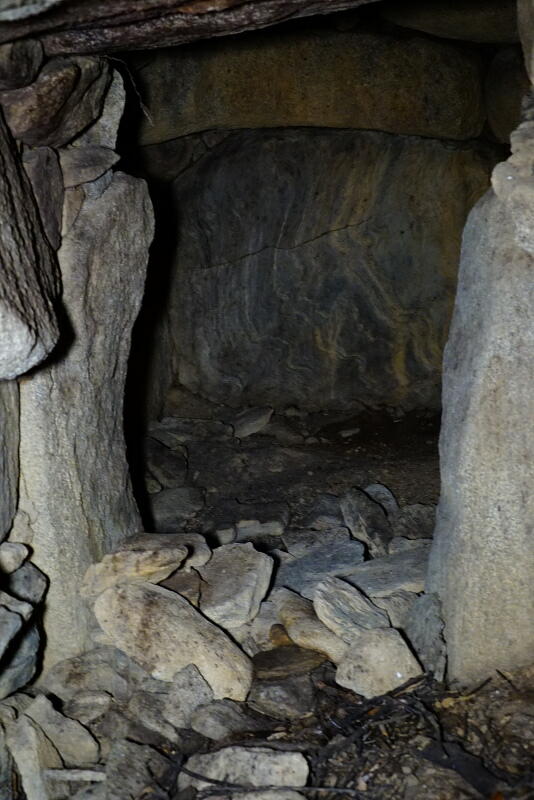 奥壁には、他の石室で天井石に用いられていた、縞模様の石材が鏡石になってますね。