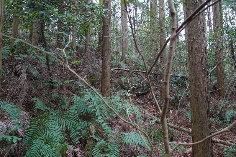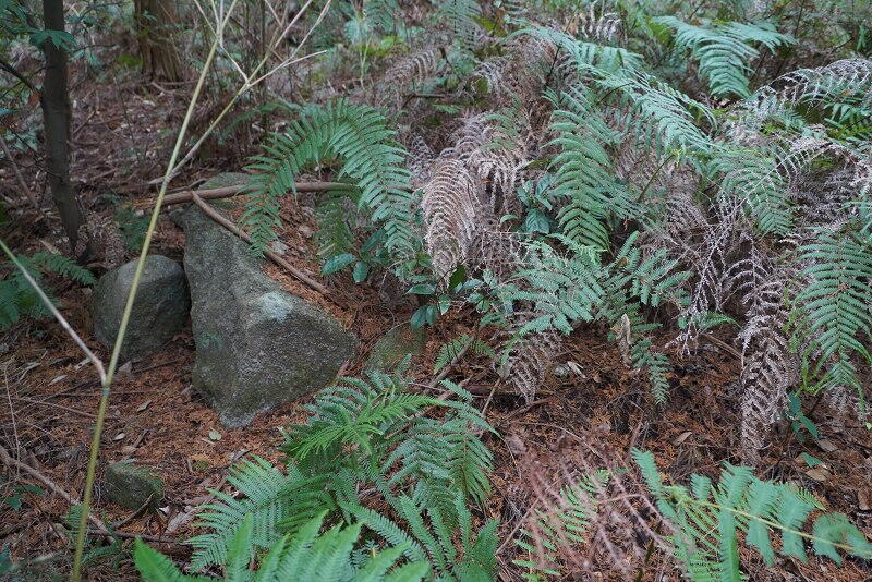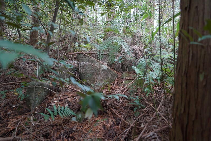 薮の中に石材が見えます。