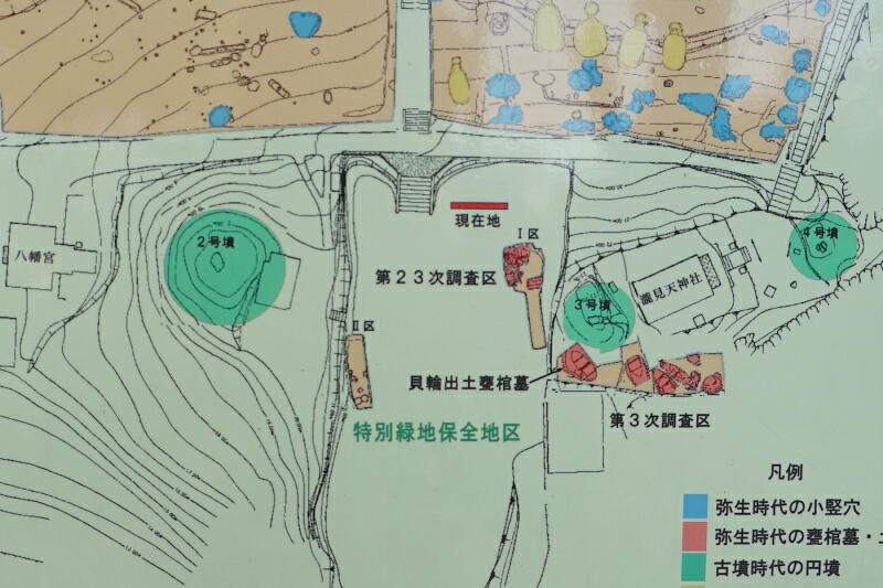 上の写真は、南の瀧見天神社境内から見た、諸岡八幡宮境内にある2号墳。