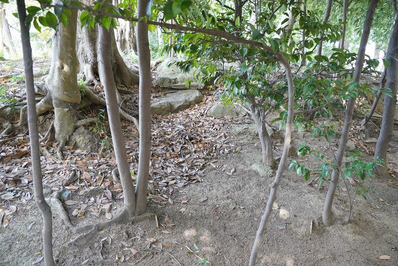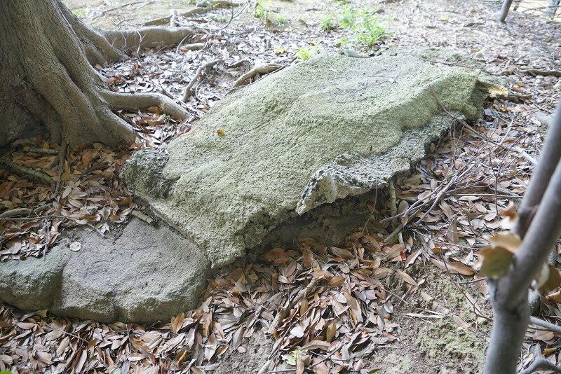 北側に露出した石材。