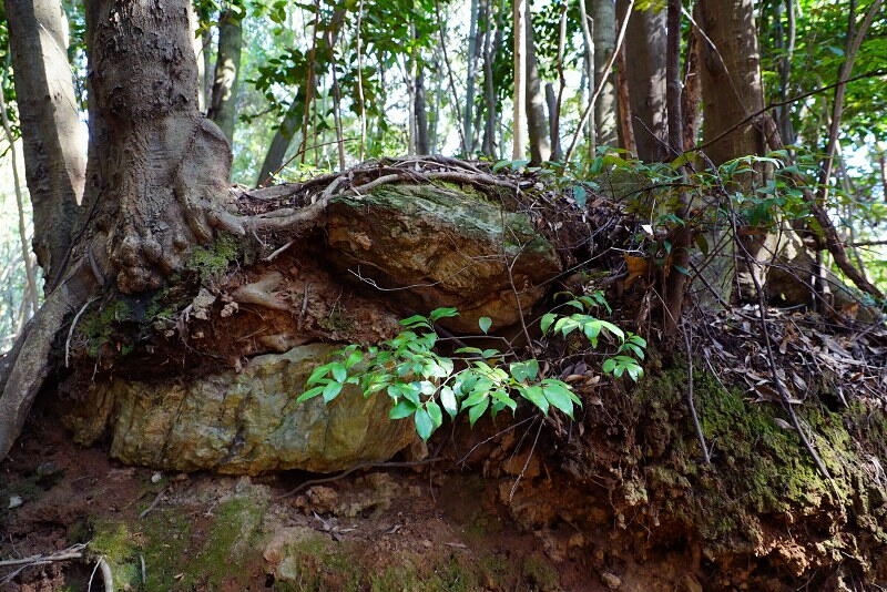 反対側の断面には、石材が露出。