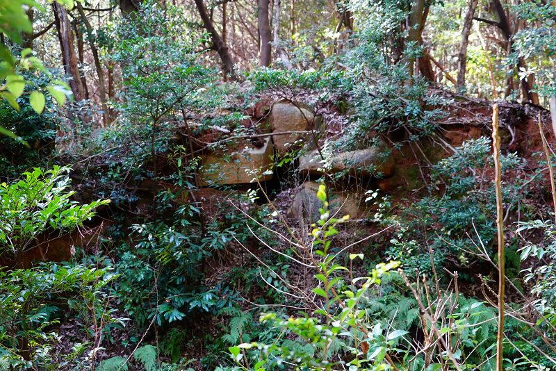 横穴式石室の石材が露出。