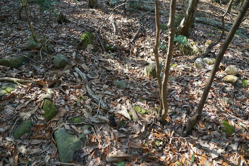 墳頂は浅く陥没し、目ぼしい石材は無し。