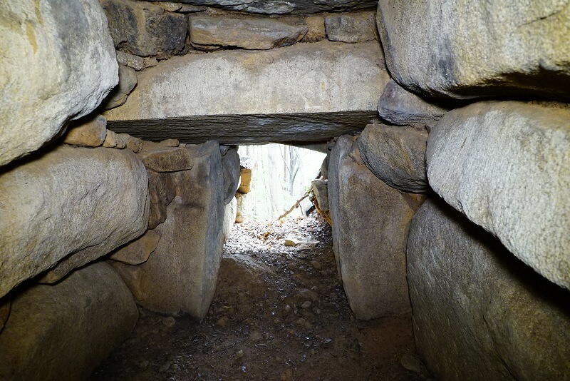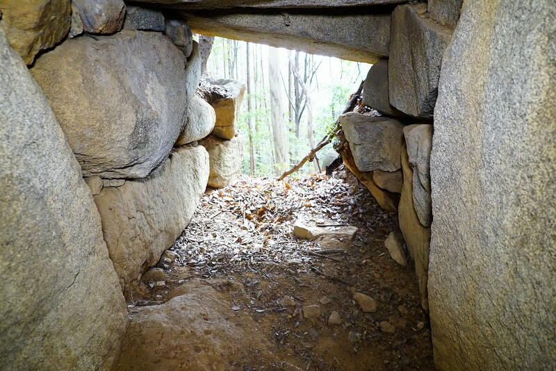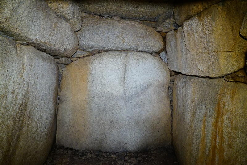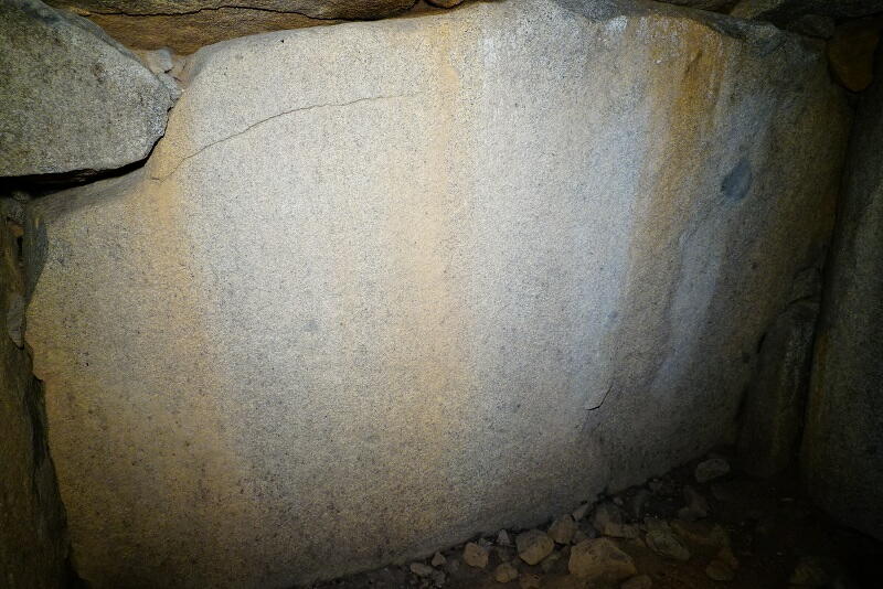 壁面それぞれに巨石の一枚岩を用いた、巨大な石槨のような構造。
