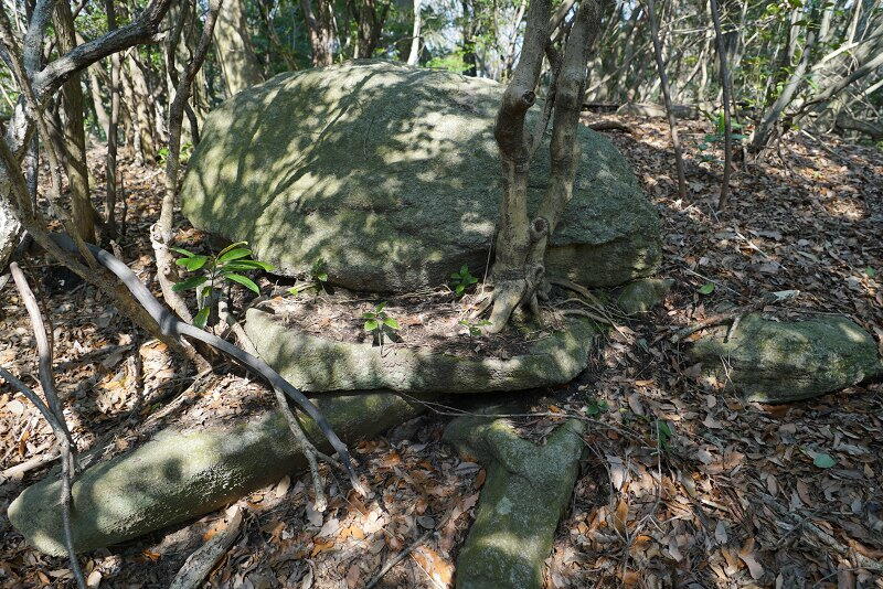 墳頂には天井石が露出。