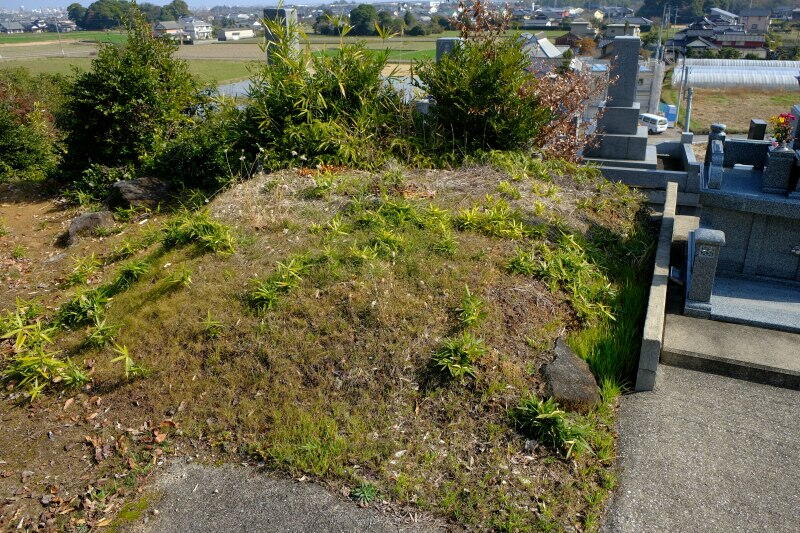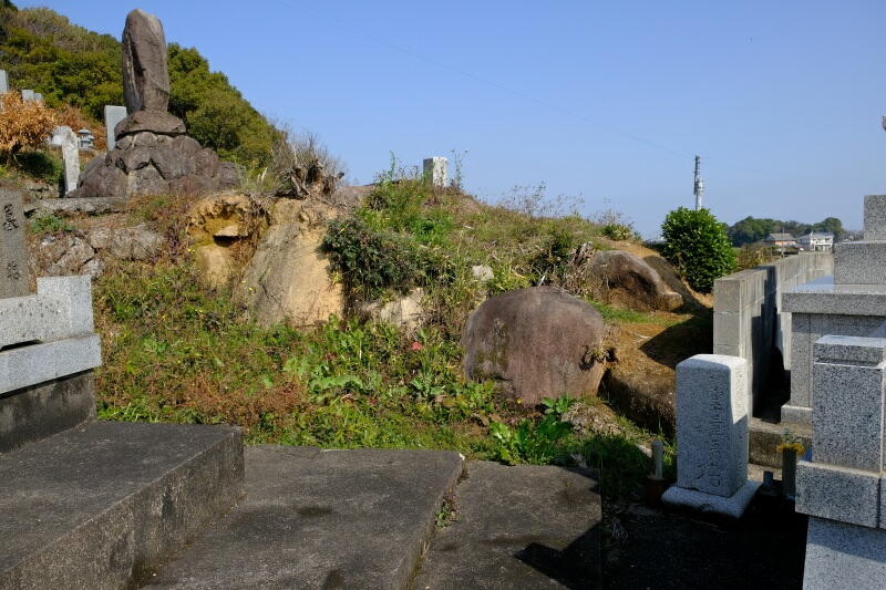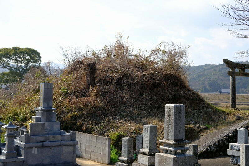独立丘陵の北東斜面の墓地内に、2基の古墳が残っています。