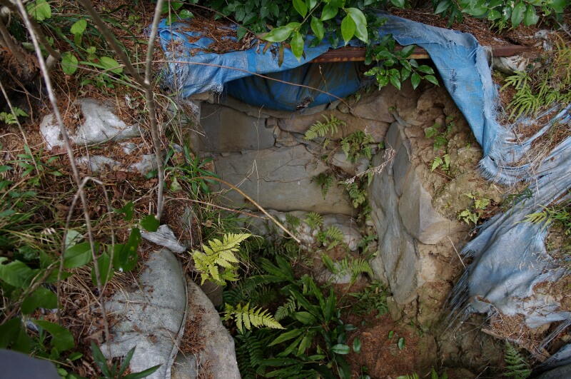 左側壁下部の奥の石材に格子文ですが、以前より床が埋まって見学しづらい・・・