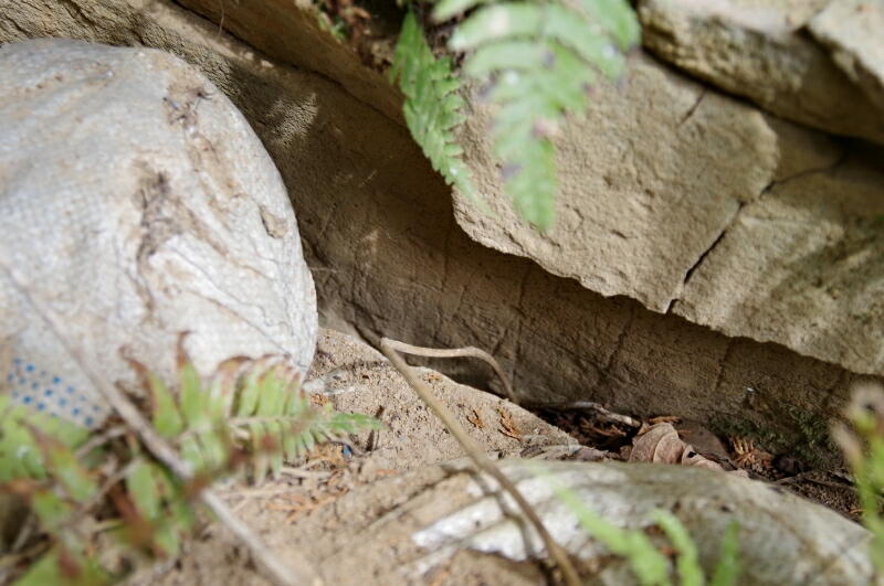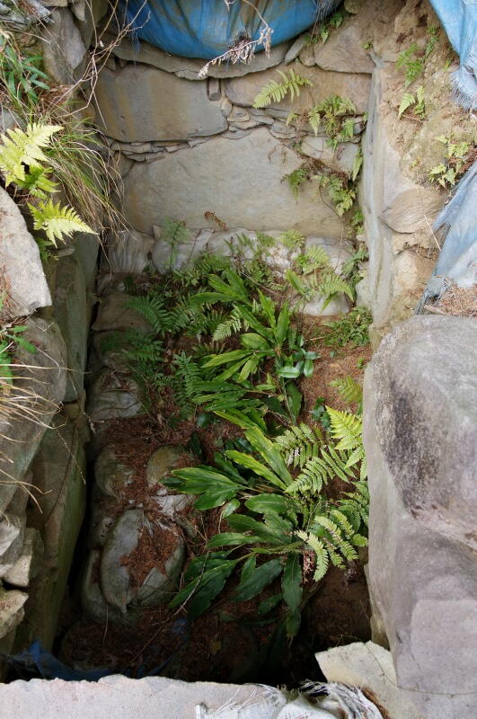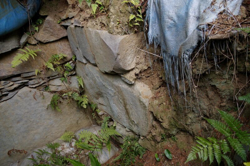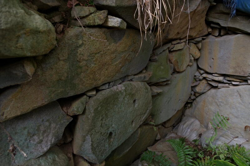 下部に巨大な鏡石を据え、石材の隙間には薄い割石を詰めています。
