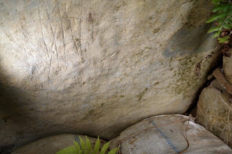 この埋まった床面下にも、多数の線刻壁画があるそうです。 |