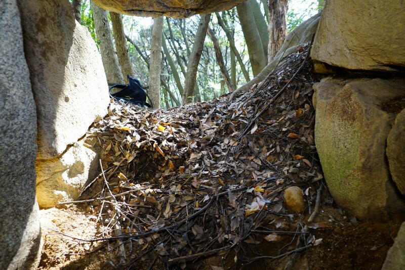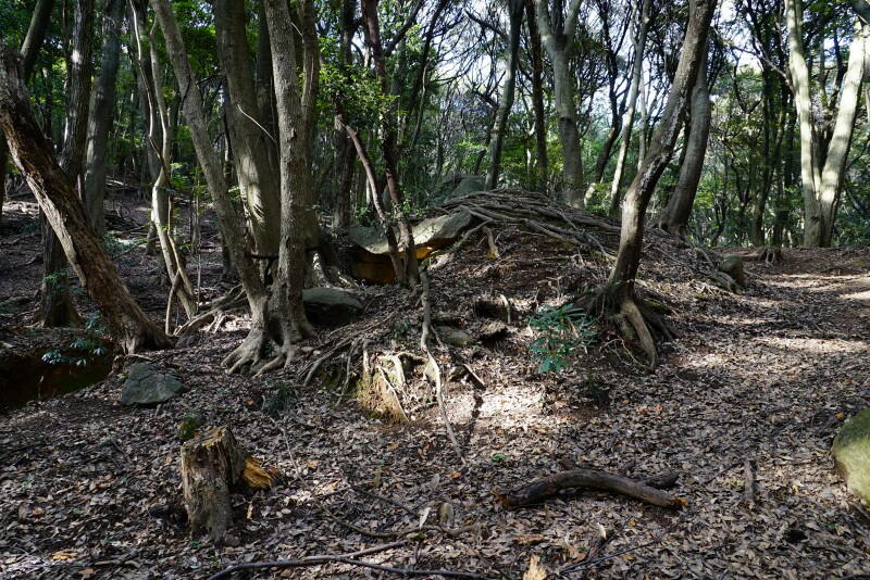 狭いが横穴式石室が開口。