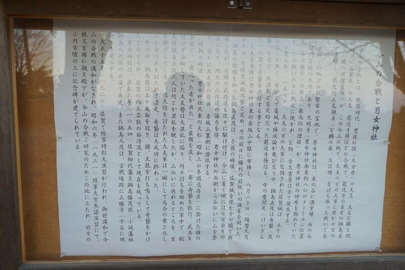 佐賀市大和町大字久留間5109、船塚古墳から1kmほど北西の山上に男女神社という神社があります。