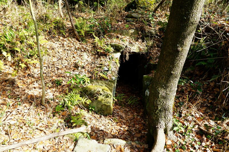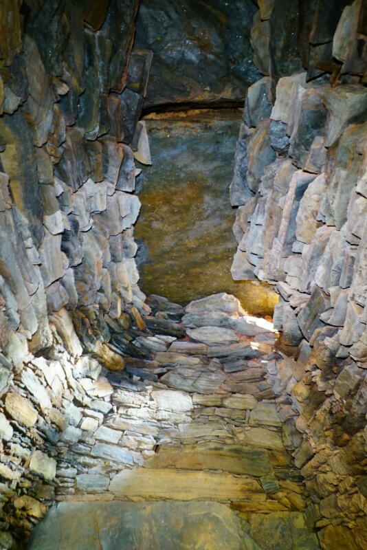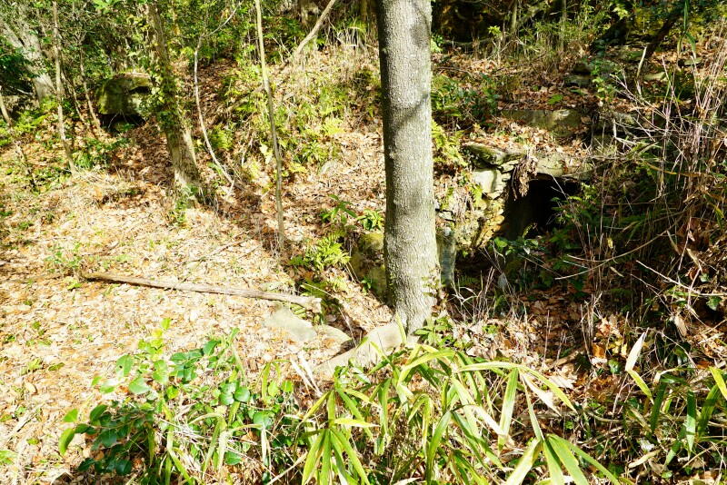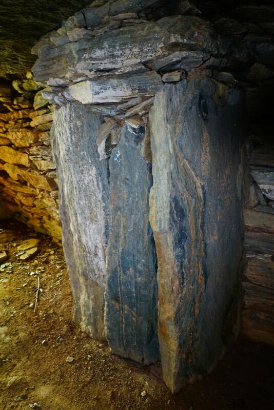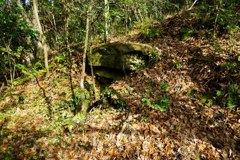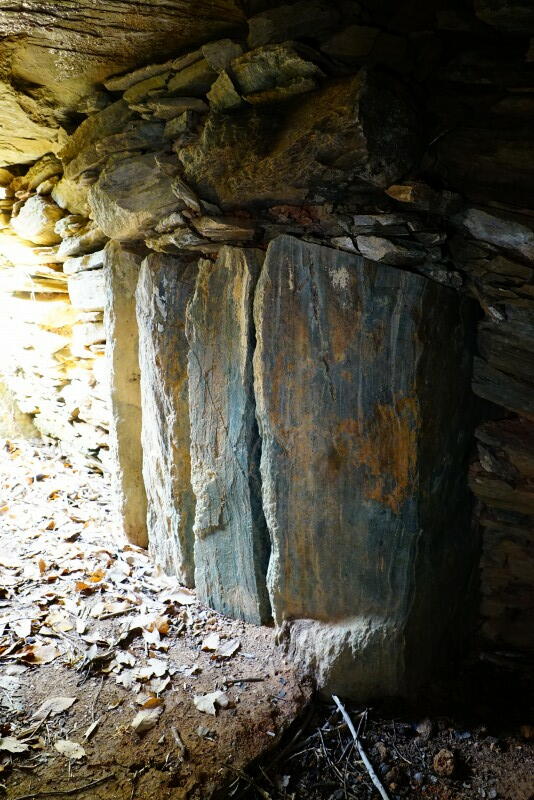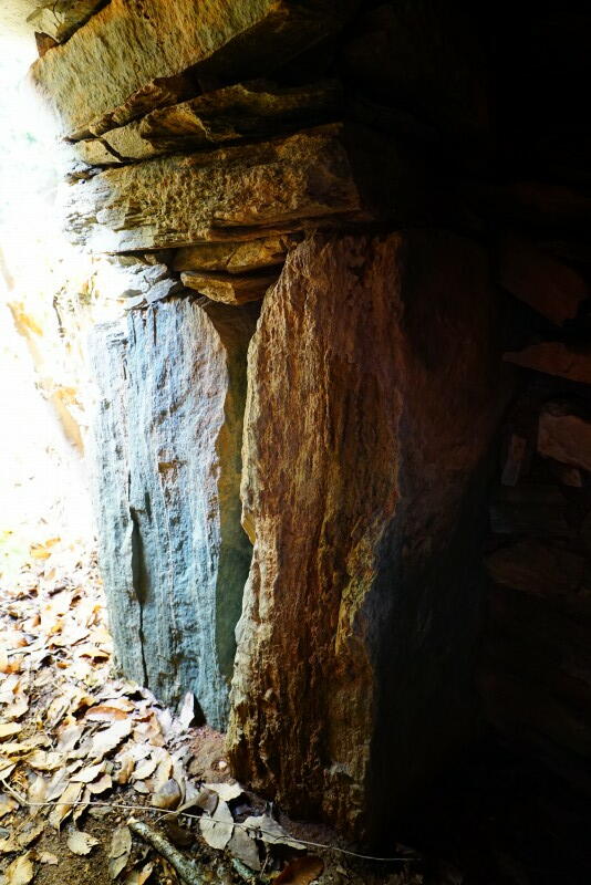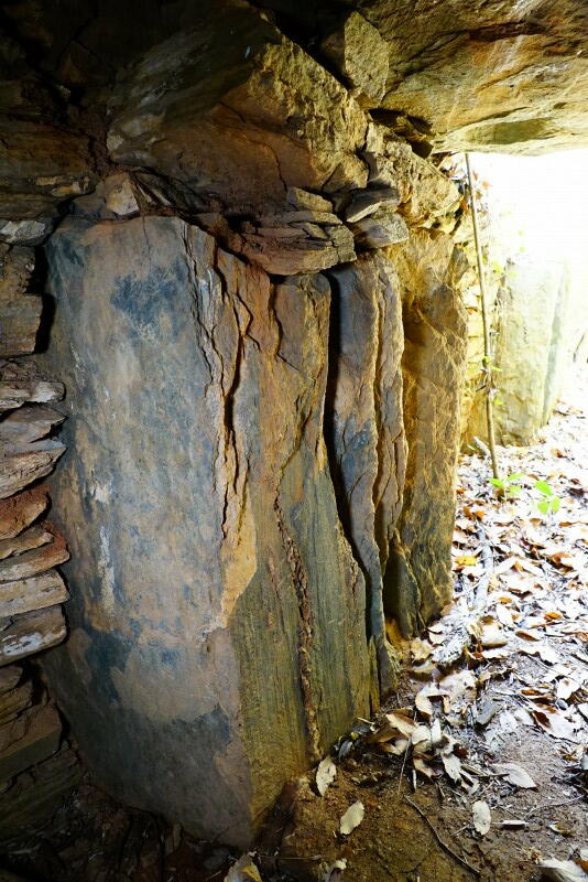 側壁が極端に持ち送り、石室断面が三角形になってます。