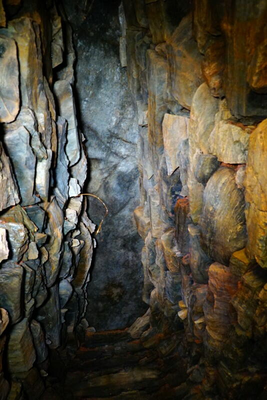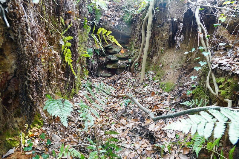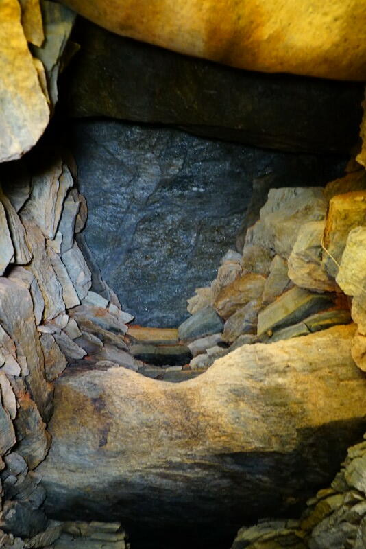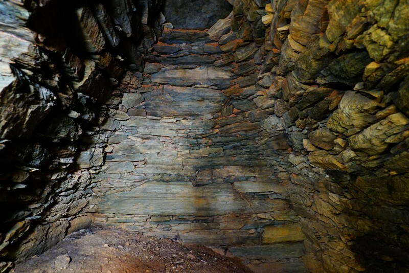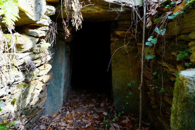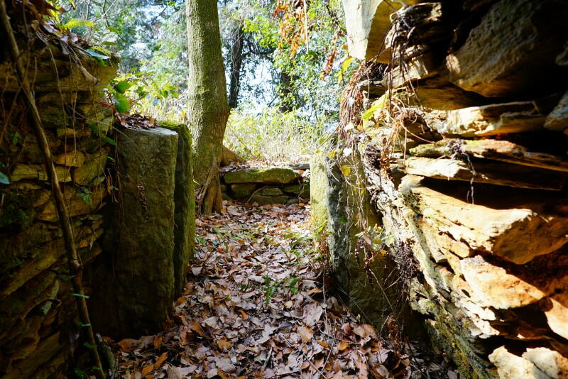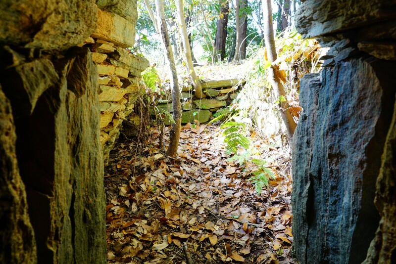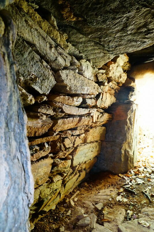 側壁が極端に持ち送り、石室断面が三角形になってます。