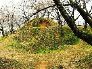 文字通り、二つの方墳が繋がった双方墳という形式の古墳。 右側が西墳、左側が東墳です。 双方の墳丘にそれぞれ別個の横穴式石室を持っていますが、現在見学できるのは東墳の石室のみです。