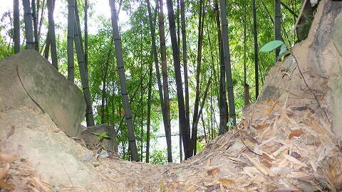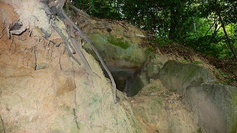 この古墳、断崖絶壁の中腹に開口してますが、通りから 見えないので、探すのに手間取りました。 見つからないので付近で農作業していたおばあさんに 尋ねたところ、親切にも古墳まで案内してくださいました。 この場を借りて、篤く御礼申し上げます。