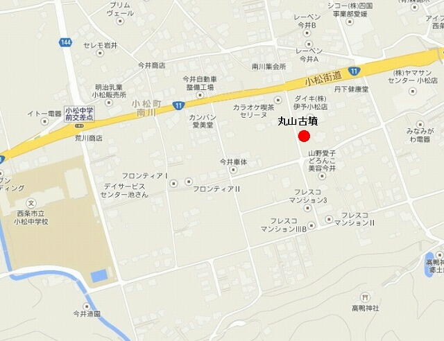 | 西条市小松町南川、市立小松中学校から200mほど 東の住宅街にある古墳。